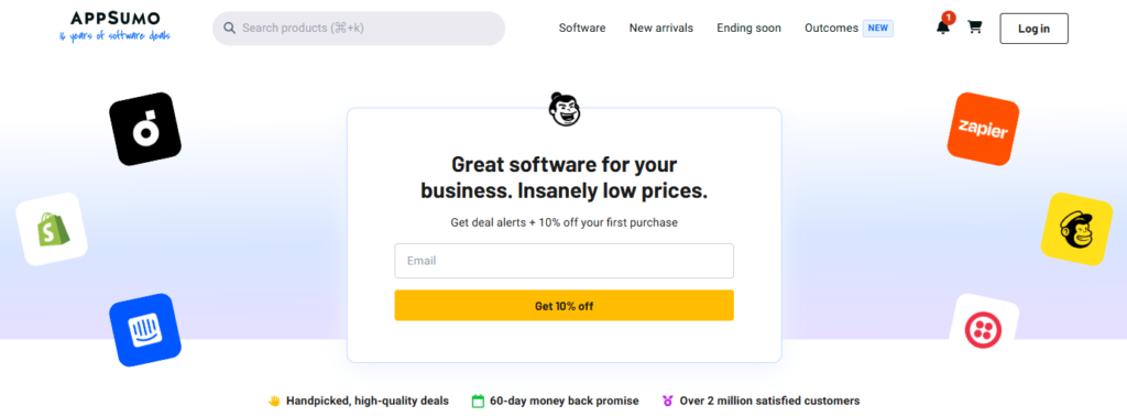 • 10% off all AppSumo deals — on a $200 deal, that is $20 saved immediately